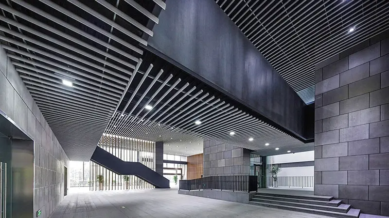 The parallel arrangement and geometric shape of the baffles not only create eye-catching visual effects but also generate dynamic interplays of light and shadow under varying illumination conditions, adding vibrancy to the space.